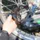 Sam sem po presenetljivo hitrem pisku štarterja (poglejte v videu spodaj) moped zajahal razmeroma pozno, a vseeno dobro štartal, se v prvi zavoj pripeljal na drugem mestu, v tretjem povedel in vodstvo ohranil do zadnjega, dvanajstega kroga. Po prevoženem prvem krogu in videnih skalah in ostrih opekah me je zaskrbelo za zračnice v gumah. Misleč, da bo dirka precej blatna (celega kroga prej nismo šli pogledat – napaka!) smo gume ‘napumpali’ takole: