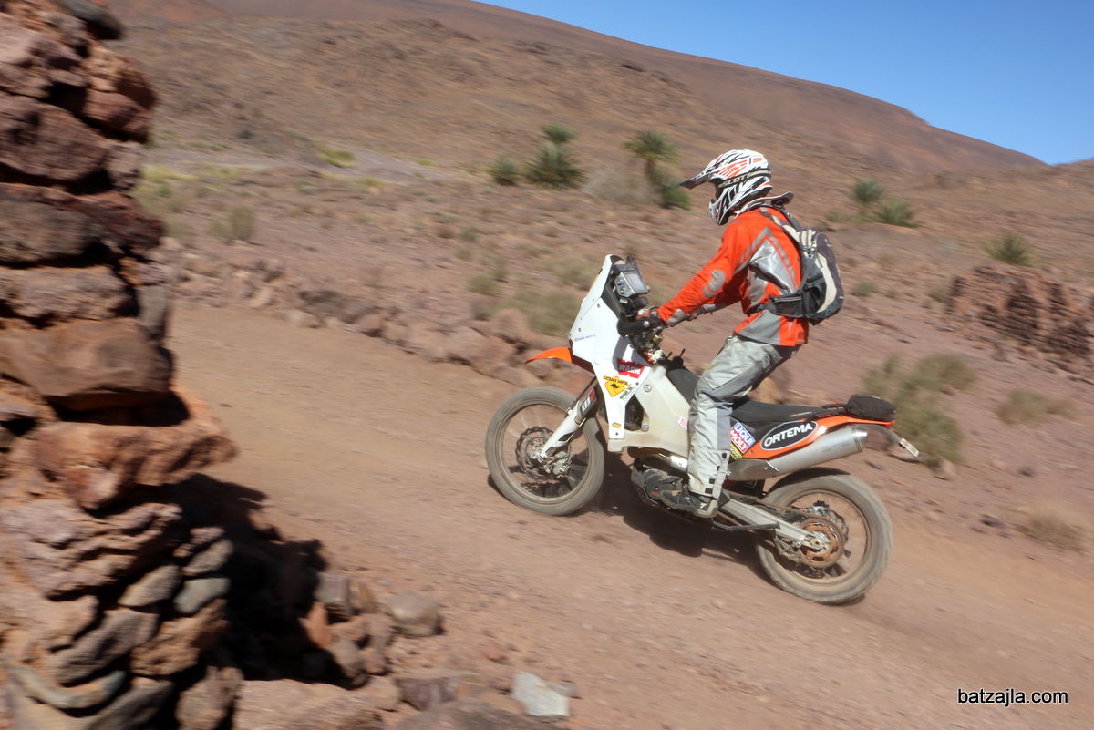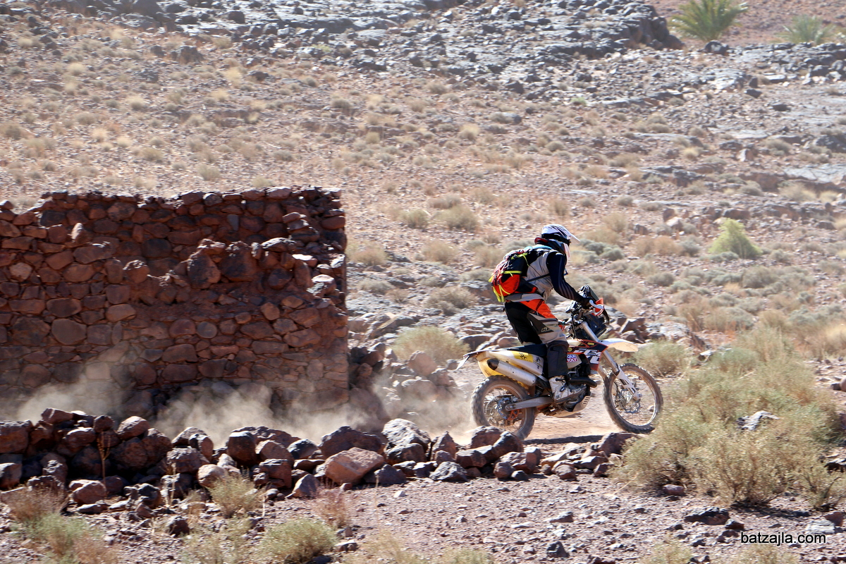 Nekje na sredini prve hitrostne preizkušnje čakam med ruševinami blizu prijetne oaze in z objektivom v roki čakam dirkače. Ravno med nastavljanjem fotoaparata mimo pripelje znana pomaranča. “Gaaaasaaa,” se zaderem, Aleš pa zavriska pod čelado in v živahnem tempu drvi dalje.